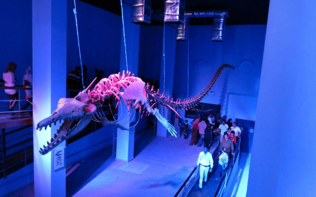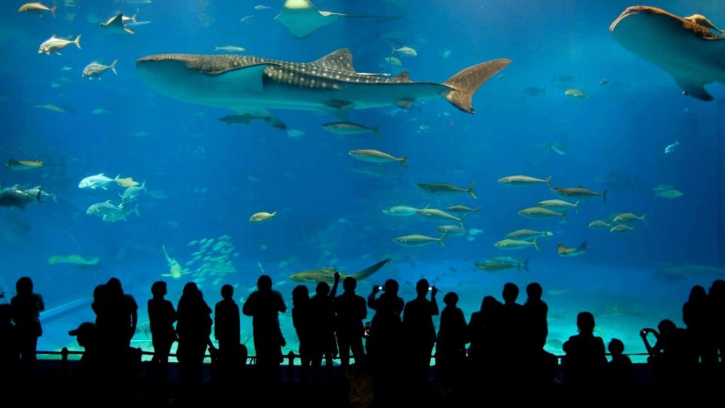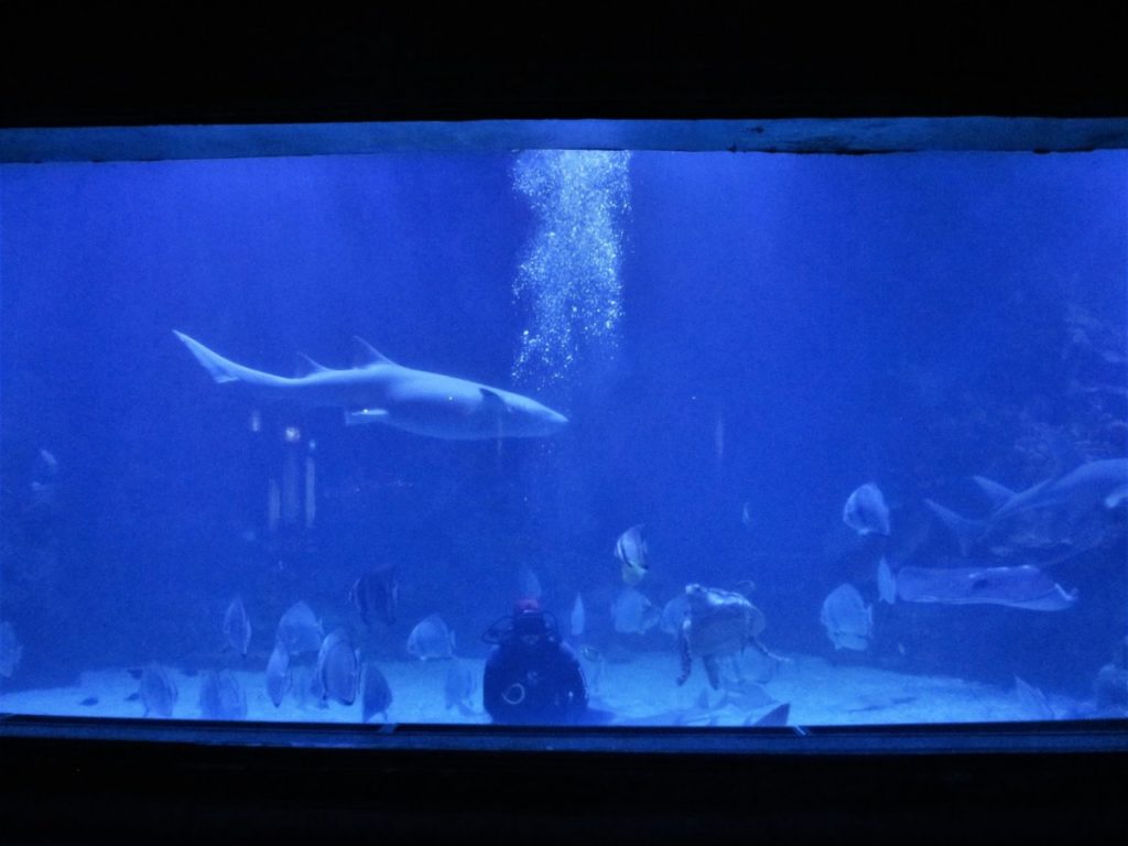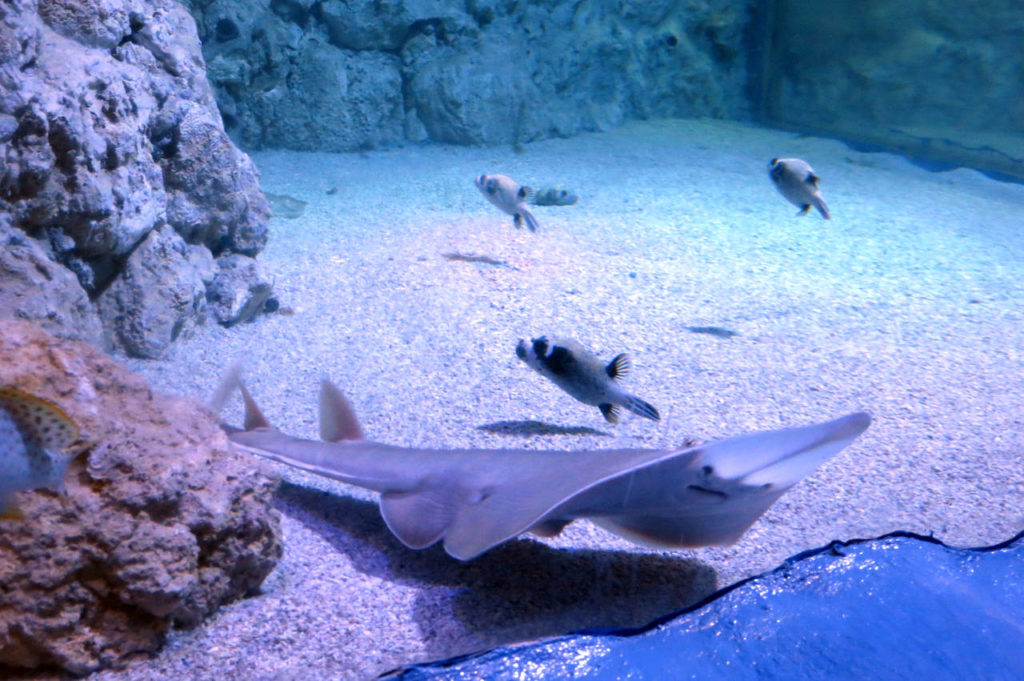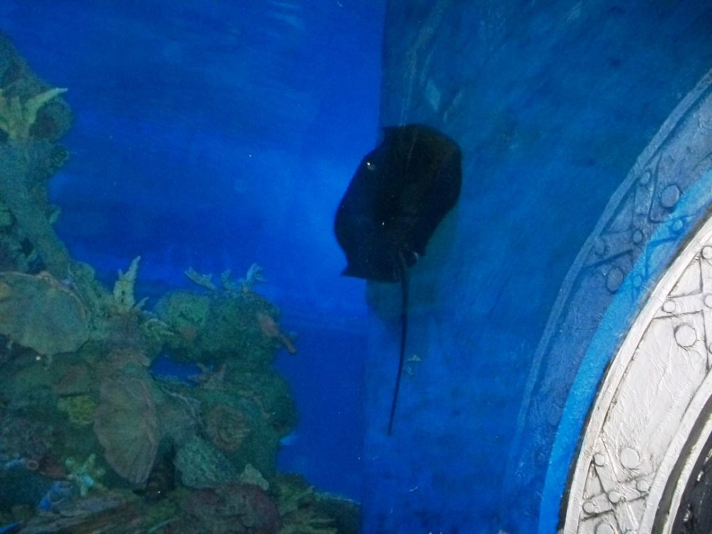 All along the way, you are accompanied by small original forms of reservoirs, streams … A sufficient number of aquariums with various fishes (moray eels, sharks, rays, sea snakes and turtles). You will see lizards, crocodiles, boas, monkeys, turtles, ostriches, as well as the skeleton of a huge whale. There is a whole hall with cylindrical aquariums. Three wide tunnels with blue illumination, as if you yourself fall into the depths of the sea.