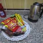 Free mini-bar (several types of excellent tea, coffee, milk for coffee, coffee with milk, hot chocolate and other hot drinks, sugar, sugar substitute, jam, chips, crackers, croissants, chocolate, cookies etc.). Also in the minibar is drinking water, coca-cola, sprite.