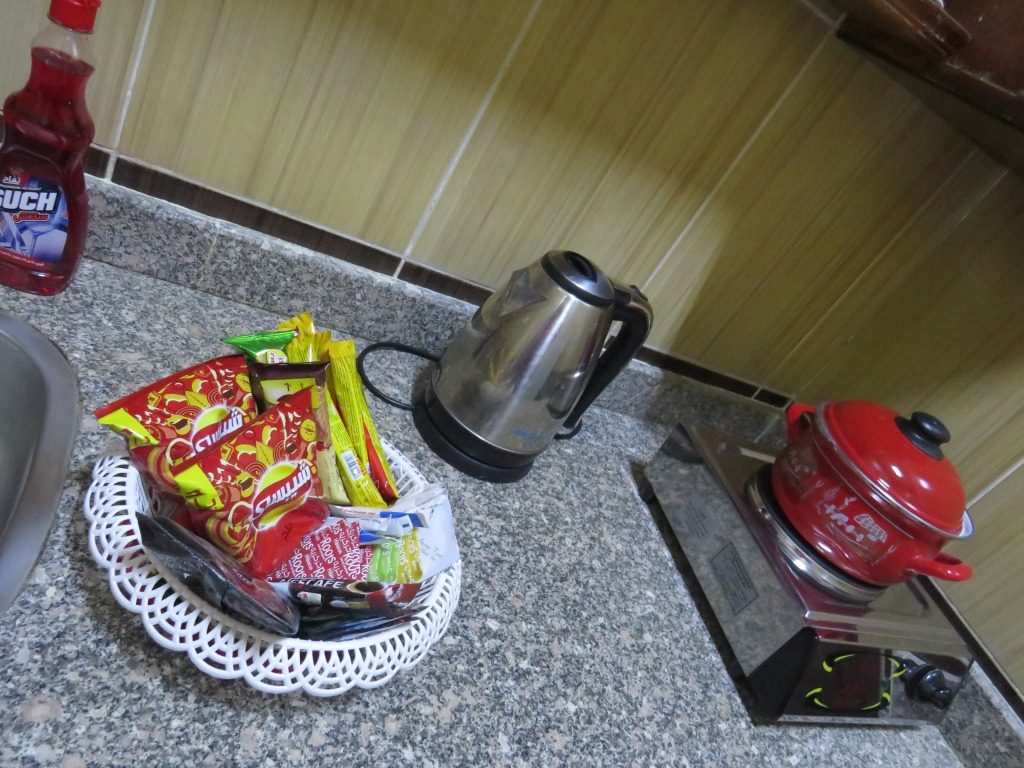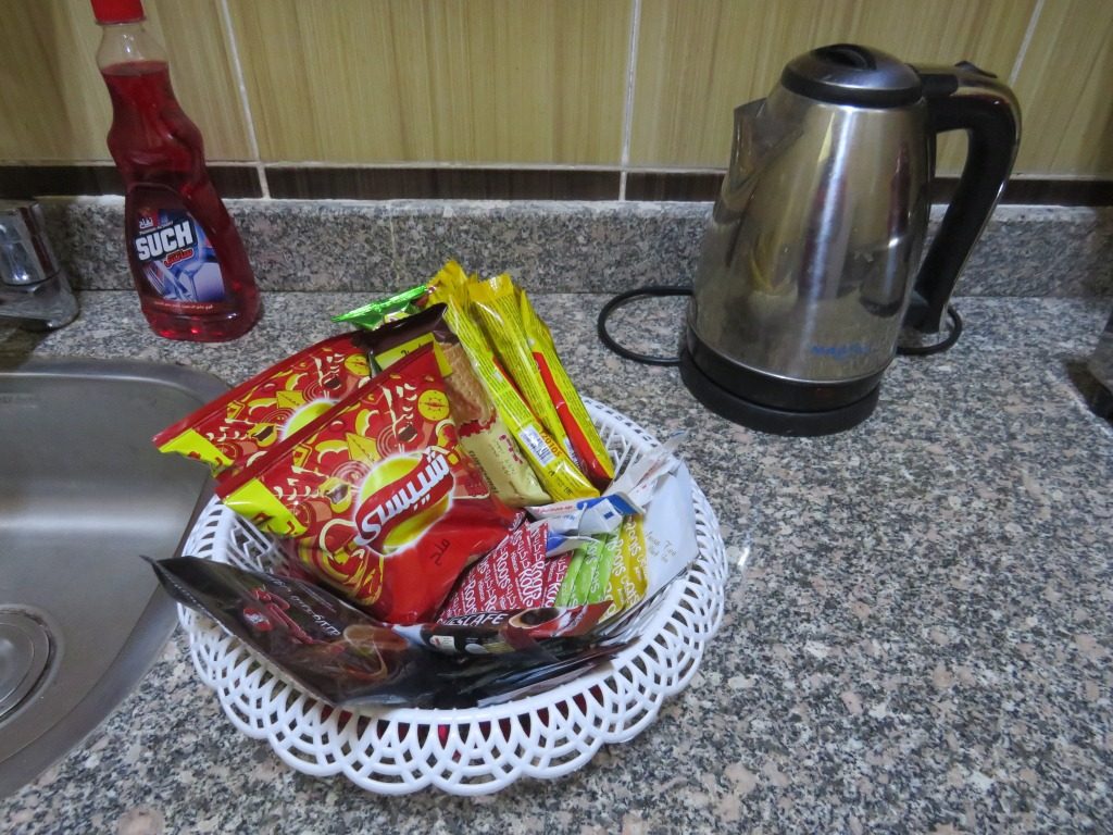 Free mini-bar (several types of excellent tea, coffee, milk for coffee, coffee with milk, hot chocolate and other hot drinks, sugar, sugar substitute, jam, chips, crackers, croissants, chocolate, cookies etc.). Also in the minibar is drinking water, coca-cola, sprite.